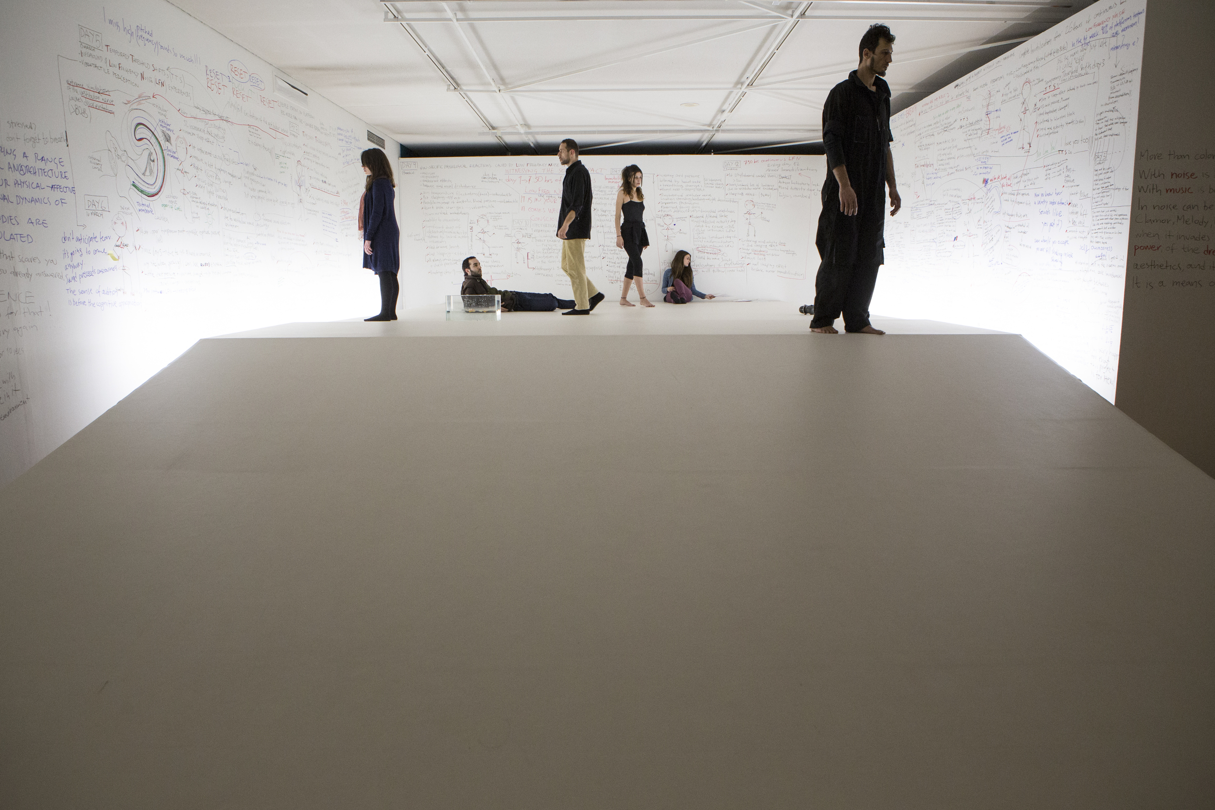 Impulsionado por sua pesquisa em ecologia acústica em relação ao corpo humano, Lambros Pigounis tentará dar forma física à micropolítica das ameaças de sinalização sonora e demonstrar as maneiras pelas quais o ruído pode ser usado como uma forma de violência que também molda a paisagem sonora do futuro. Ele criará uma situação de longa duração em que seu corpo está exposto a forças vibracionais subsônicas, desencadeadas pela presença de pessoas ao seu redor. Deixado em um estado de constante ameaça por sete semanas, o corpo experimenta inconscientemente três tipos de reações induzidas pelo medo: congelamento de luta e fuga.