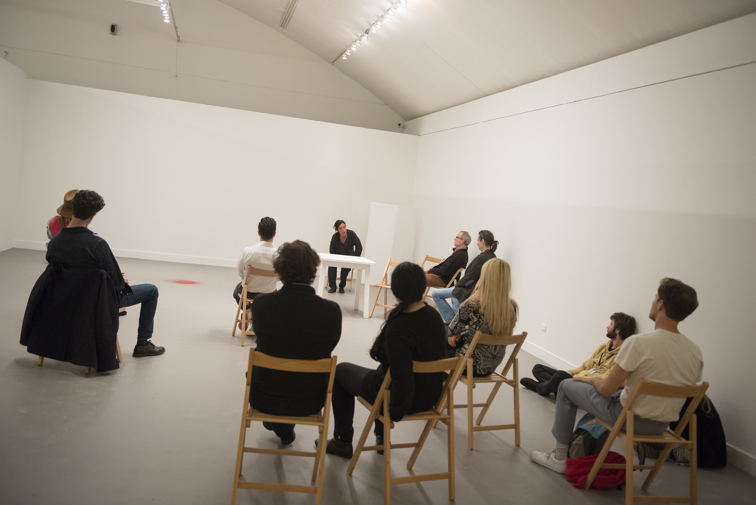 Essa performance explora os espaços mentais que se abrem durante a troca de controle nas relações humanas. Ao longo de sete semanas, durante oito horas por dia, o artista “hospedará” o público em um espaço fechado e realizará um conjunto de ações combinando métodos e objetivos extraídos de práticas de meditação, disciplina e restrição. O objetivo desta peça é criar situações experimentais e potentes de troca de controle enquanto se joga com as múltiplas funções do olhar: um mecanismo de introspecção, vigilância, reconhecimento e comunicação.