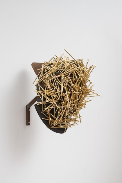 Capacete customizado com metal, ímãs de neodímio e pregos banhados a ouro.